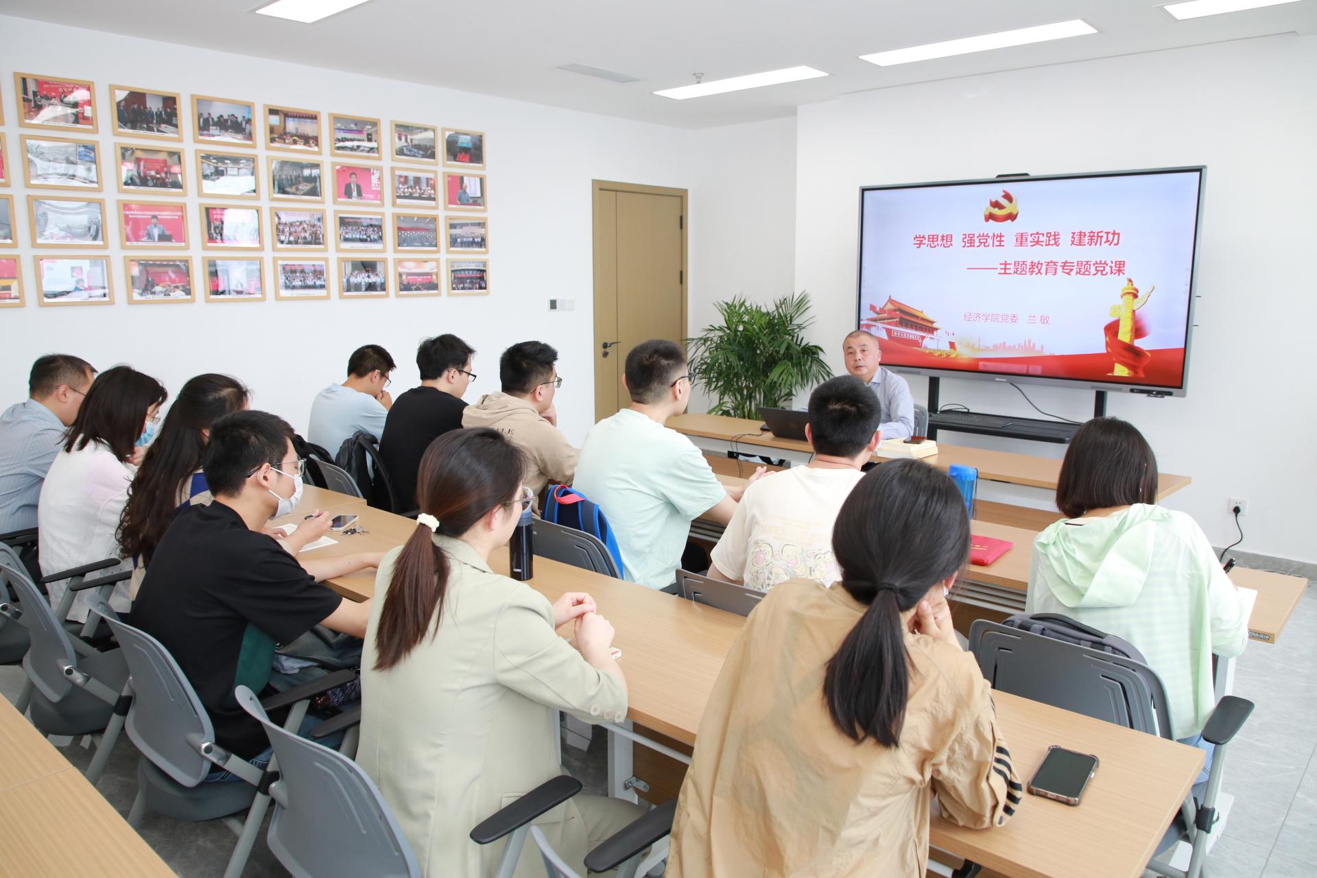 5月24日,学院党委书记兰敏在诚正楼1542室讲授学习贯彻习近平新时代中国特色社会主义思想主题教育专题党课。学院党委委员、党支部书记、支委及师生党员代表参加学习。