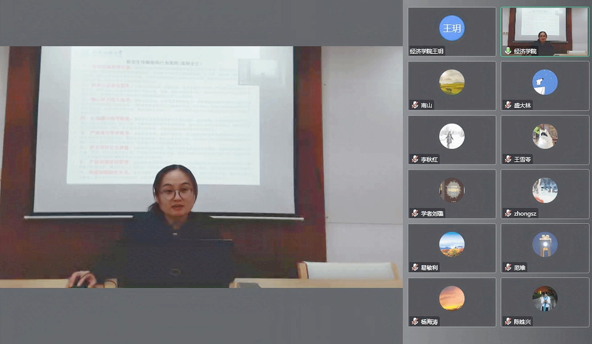 会上,邹红副院长带领全体研究生导师学习了教育部印发的《新时代高校教师职业行为十项准则》《研究生导师指导行为准则》和学校《全面落实研究生导师立德树人职责的实施细则》等相关制度文件。强调了导师是研究生培养的第一责任人,各位导师应坚持正确的政治方向,做到以德立身、以德立学、以德施教,当好学生成长成才路上的指导者、引路人。随后,她结合学院研究生培养情况,强调了硕博士开题答辩、预答辩和学位论文撰写的重要性,梳理了培养相关环节的具体要求、指导技巧与风险点。介绍了新版《西南财经大学经济学院博士研究生申请学位学术创新成果认定办法》对博士生的毕业科研要求的内容,呼吁导师在提高思想政治觉悟的同时也要创新研究生指导方式,在研究生指导的实践中潜移默化影响学生。最后,学院将继续为研究生的科研训练和社会实践提供平台,希望新晋的硕博士研究生导师积极加强研究生教育政策和研究生导师职责的学习,强化研究生导师基本素质和提升指导能力。