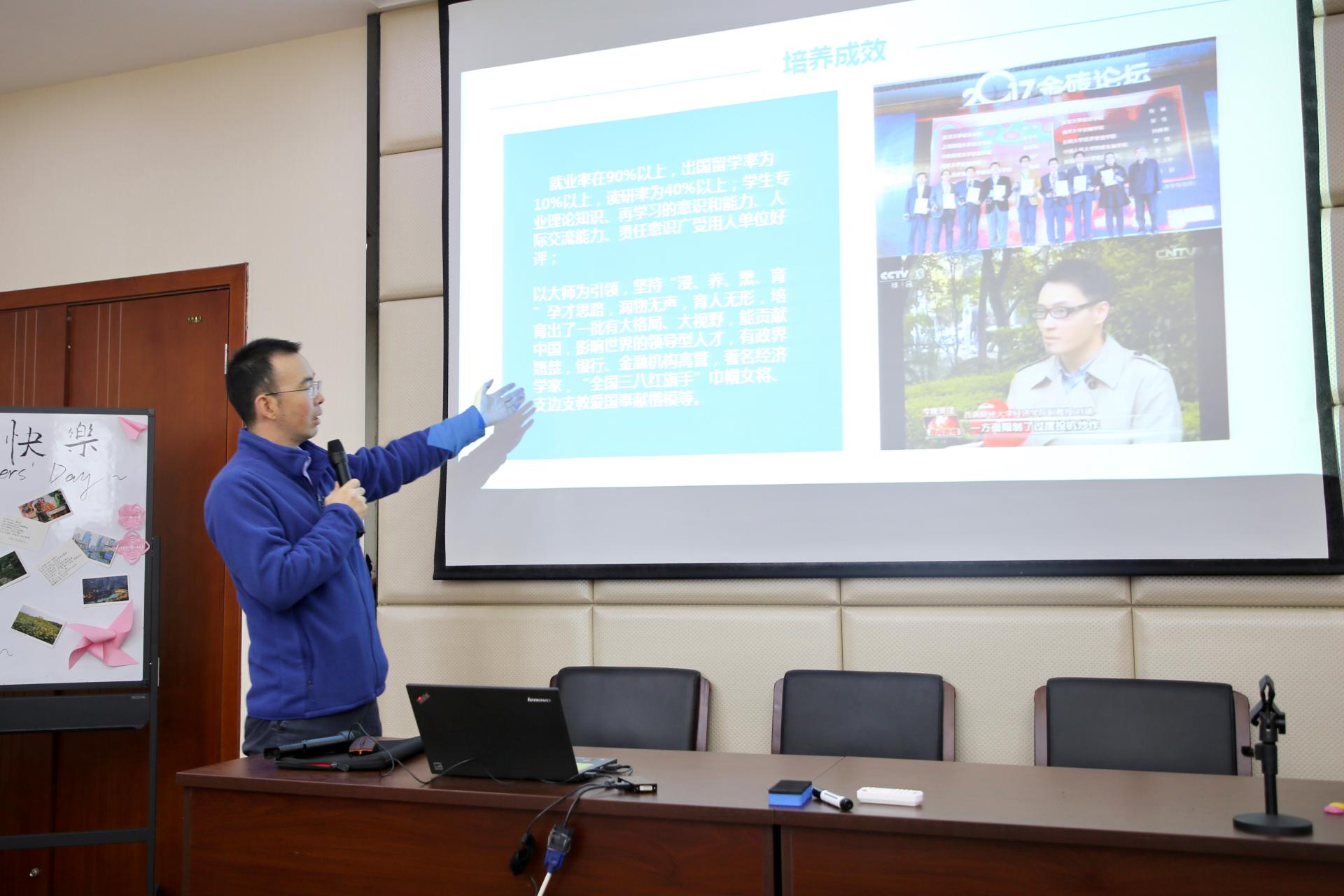 在专业介绍环节,经济系主任韩文龙给同学们介绍了经济学院的历史渊源、师资队伍、科学研究、办学特色和办学成效,以及数字经济专业的培养目标、培养特色、核心课程、培养路径、毕业生去向等。同学们就课程内容、数字产业、升学深造等问题进行了提问交流,韩文龙老师进行了耐心解答。