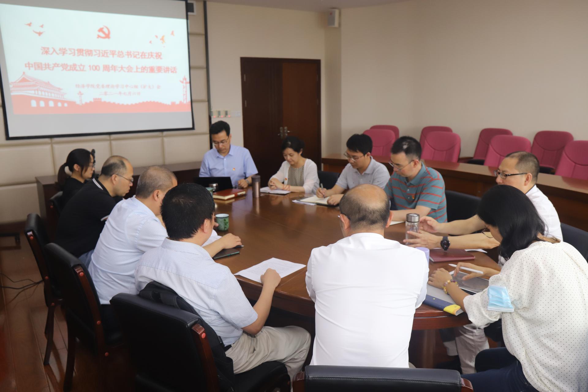 7月6日下午,经济学院分党委在格致楼918室召开理论学习中心组(扩大)会,专题学习习近平总书记在庆祝中国共产党成立100周年大会上的重要讲话。学院分党委全体委员、师生党支部书记代表参加了会议,会议由分党委书记兰敏主持。