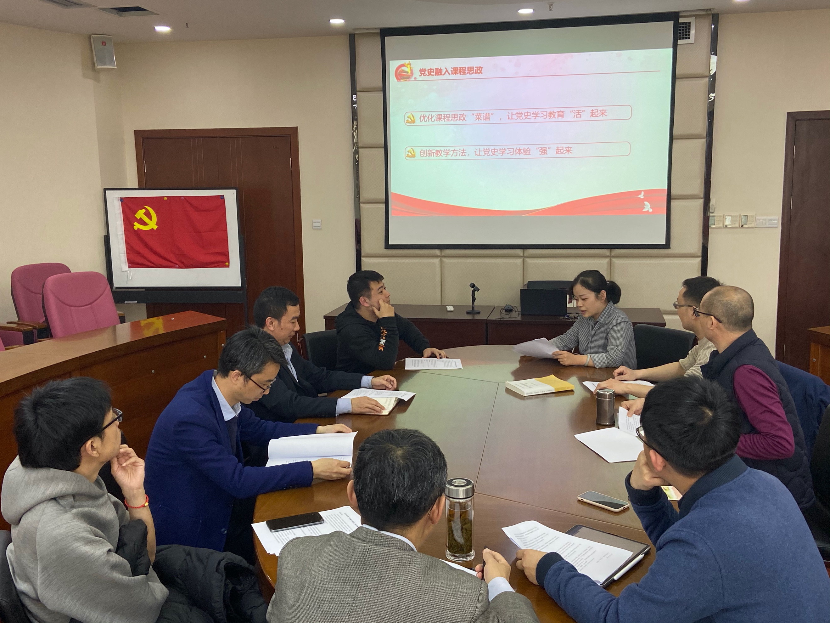 第二,如何优化课程思政“菜谱”,创新教学方法,让党史学习体验“活”起来,“强”起来。老师们群策群力,积极提出如何用更加深刻灵活的方式将“党史”融入课堂。