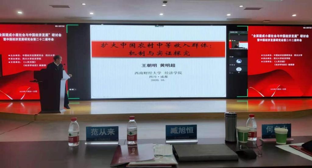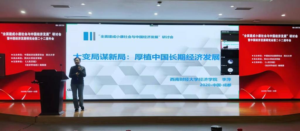 2020年11月21日,由中国经济发展研究会和四川大学主办、四川大学经济学院承办的“全面建成小康社会与中国经济发展”研讨会暨中国经济发展研究会第二十二届年会在四川大学经济学院成功召开。来自北京大学、中国人民大学、中央民族大学、南开大学、南京大学、山东大学 、复旦大学、吉林大学等国内高校和科研机构的60余名专家学者莅临参会,同时有近百位专家通过网络在线参会。经济学院程民选教授、王朝明教授、李萍教授、袁正教授、韩文龙副教授参加了此次年会。