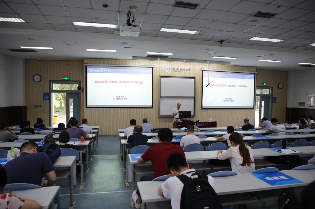 为贯彻落实学校中干会精神,扎实推进学院各项工作,9月8日下午,经济学院在柳林校区经世楼G102召开今年秋季学期第一次教职工政治理论学习会及全院教职工大会。