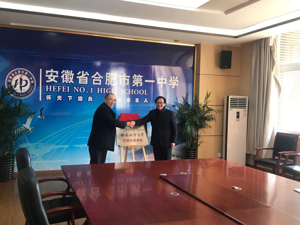 2019年12月7日-10日,经济学院招生宣传组(以下简称工作小组)赴安徽合肥开展普通本科招生宣传及西南财经大学“优质生源基地”挂牌工作。经济学院招生宣传组由经济学院分党委副书记胡舒和学院办公室方小书组成。