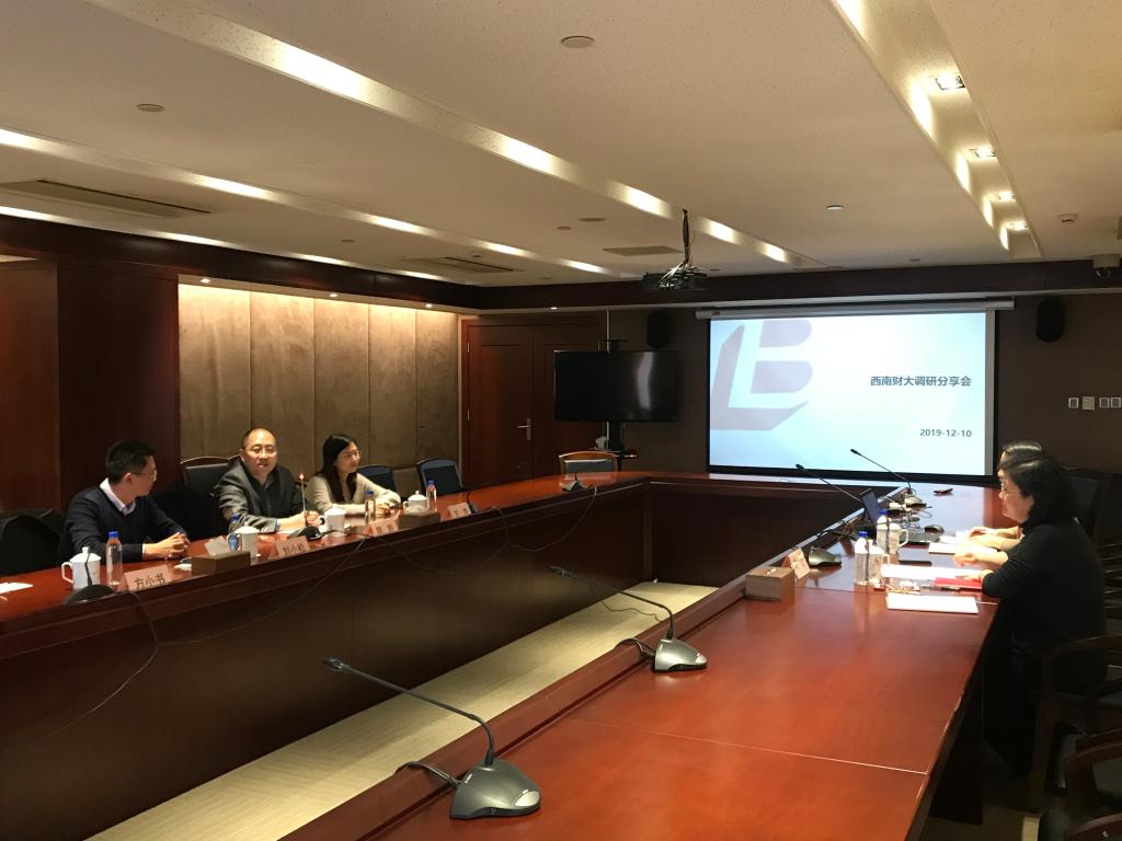 调研中,胡舒一行人与用人单位的人事部门负责人进行了座谈,深入细致地了解了各公司的发展历程、集团品牌、战略规划及全球布局。在座谈中,胡书记向用人单位介绍了学校的发展历史、人才培养目标,学院的专业设置等内容;他指出育人是高校的根本任务,培养创新型、复合型、应用型人才,离不开企业的支持,必须考虑企业的需求,希望用人单位能够对人才培养体系、创新人才培育等建言献策。用人单位表示,西南财经大学历史底蕴深厚、学风优良,学生专业基础扎实,希望能够进一步深化与经济学院的合作关系,推动双方互利共赢,共同成长。