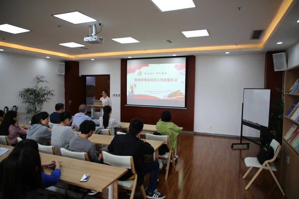 2019年10月11日下午2点,经济学院分党委在格致楼911举行新接收预备党员入党宣誓仪式。学院分党委书记兰敏、党建指导教师蒋学平、2019年度上半年接收的预备党员、学生党支部书记参加了本次活动。