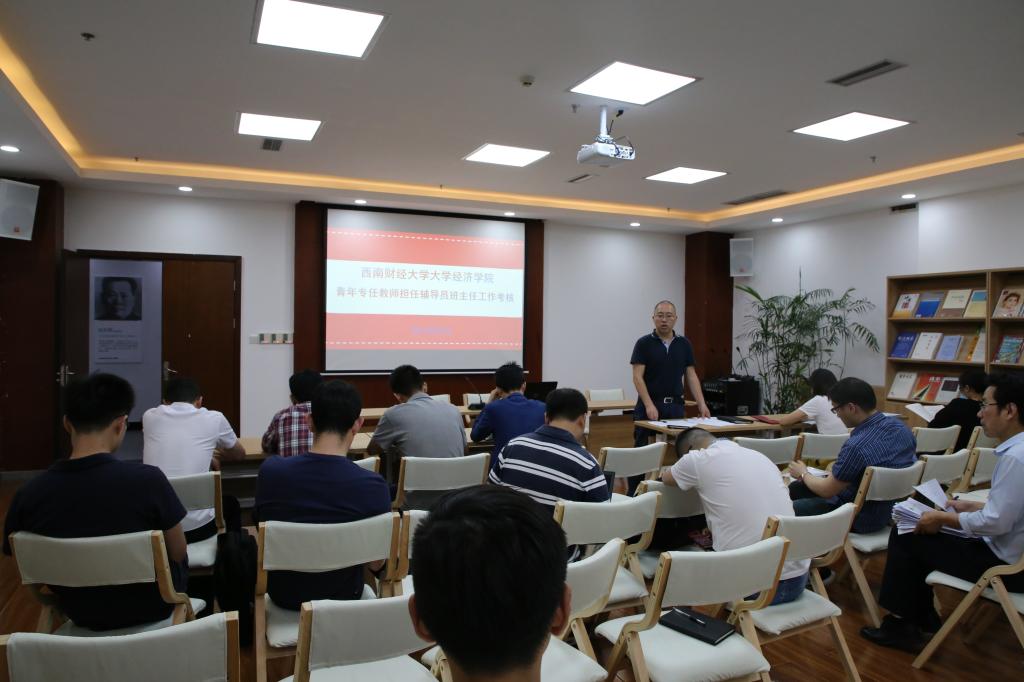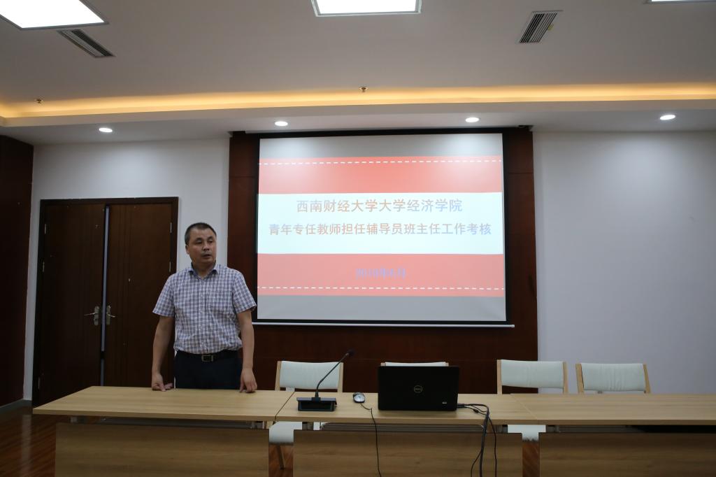 为贯彻落实全国高校思想政治工作会议精神,坚持立德树人的根本任务,促进青年教师健康成长,6月18日下午4点,经济学院在格致楼911室召开了青年专任教师担任辅导员或班主任工作考核会,经济学院分党委书记兰敏、副书记胡舒、副院长邹红、盖凯程以及全体青年专任教师辅导员、学生代表参加了会议,会议由胡舒主持。