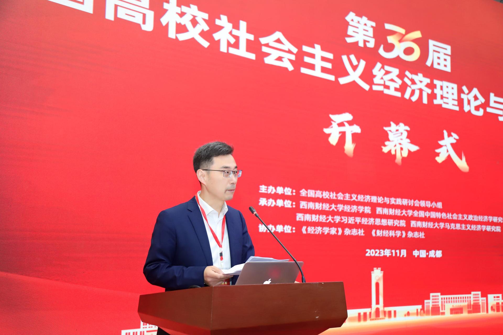 西南财经大学副校长史代敏在致辞中指出全国高校社会主义经济理论与实践研讨会至今已成功举办到了第36届,是中国经济伟大实践的见证者和参与者,是深刻总结中国经济实践经验、推动理论发展,促进中国自主的经济学知识体系建构的探索者和贡献者。服务建构中国自主的经济学知识体系,是西南财经大学这样一所具有鲜明财经特色高校的崇高责任,也是光荣的使命担当。我们非常希望能与全国高校一起努力开拓中国经济学研究的新境界,为构建具有中国特色、中国风格、中国气派的社会主义经济学理论体系,促进经济学学科建设和人才培养作出新的更大贡献!