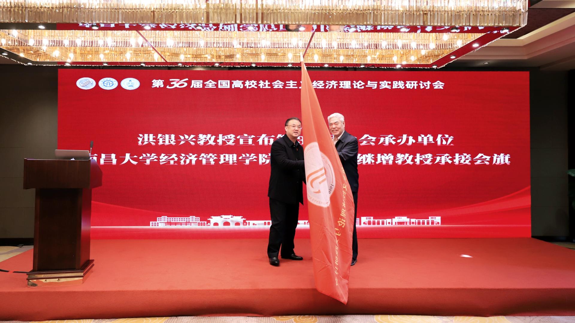 最后研讨会领导小组组长洪银兴教授为西南财经大学经济学院授牌并宣布了下一届大会承办单位,南昌大学经济管理学院副院长彭继增教授承接会旗。