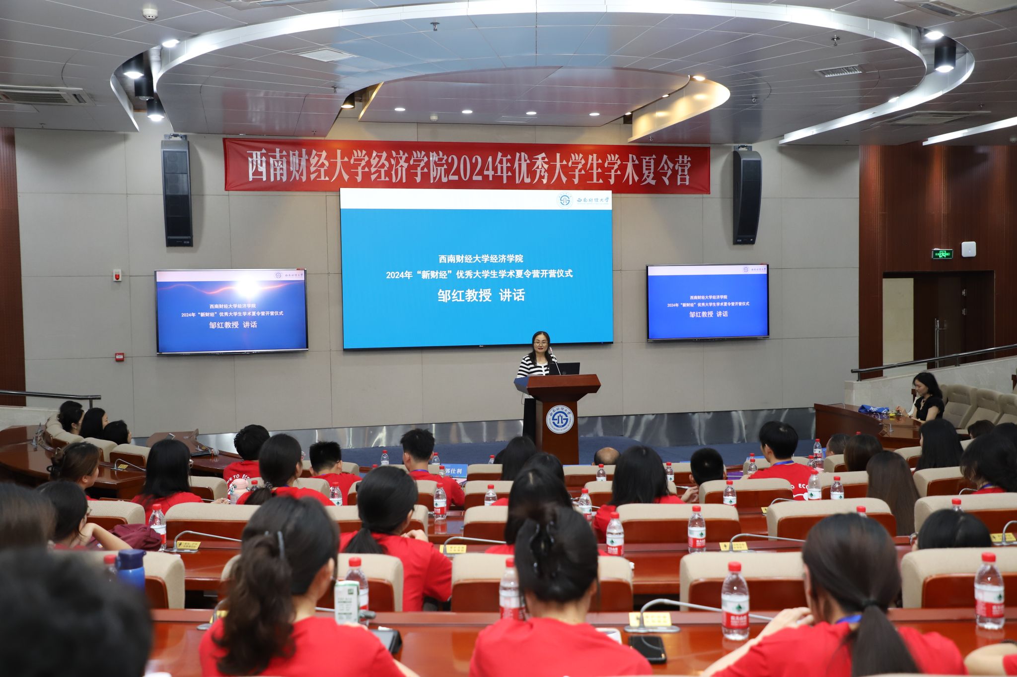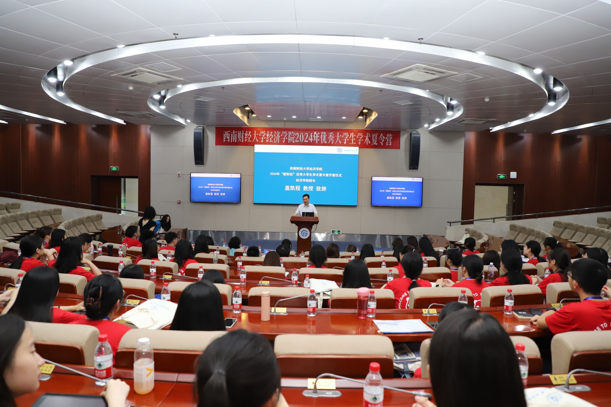 7月8日上午,西南财经大学经济学院在弘远楼101报告厅举行了2024年“新财经”优秀大学生学术夏令营开营仪式。经济学院院长盖凯程教授、副院长邹红教授、各系所负责人、教师代表,以及来自全国各重点院校的78名优秀学生参加了此次开营仪式。