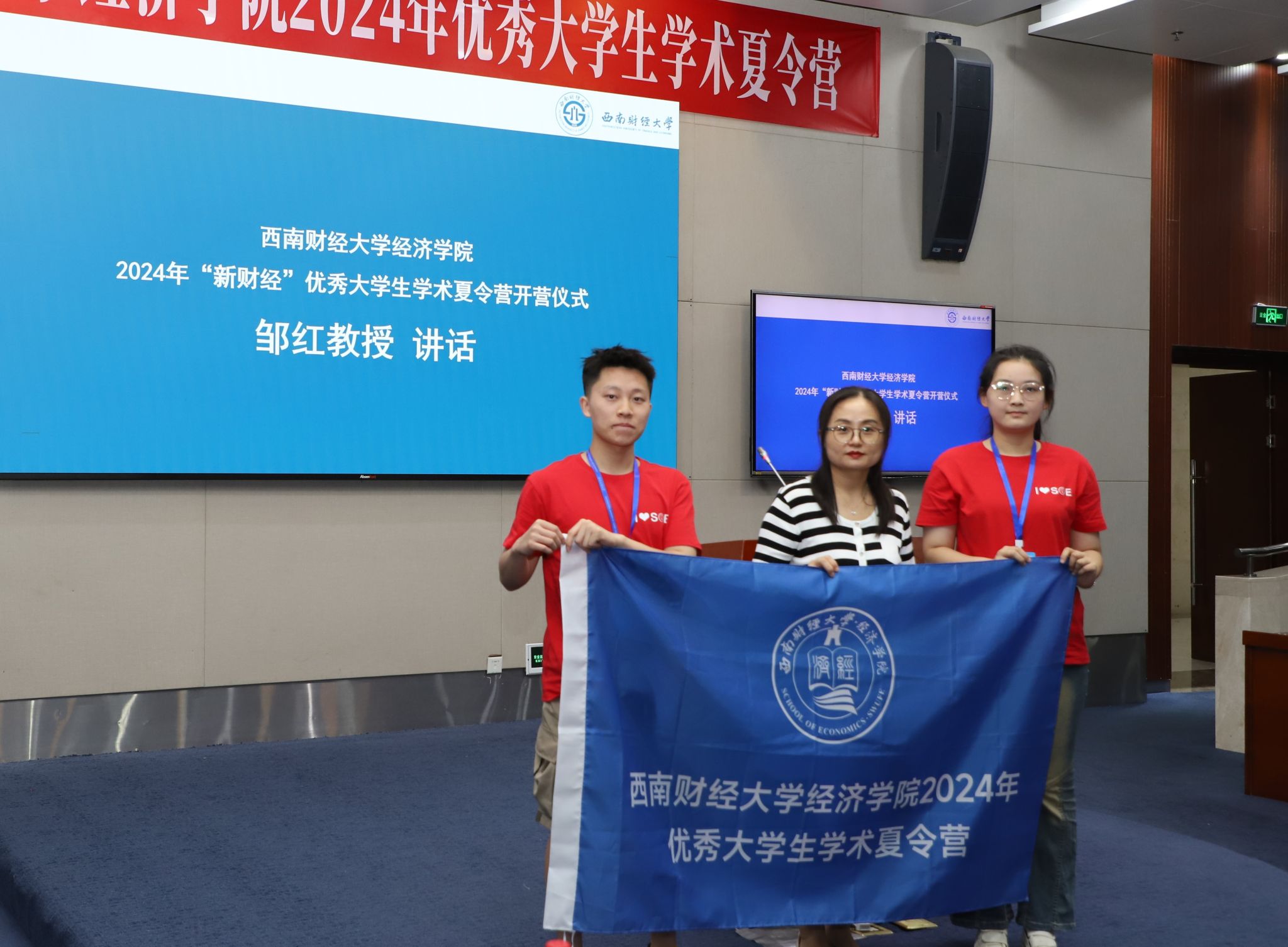 邹红副院长就经济学院研究生培养特色、出国交流、就业情况与面试细则,向各位营员们做了详细介绍,她指出经济学院是一所办学历史悠久、学术氛围浓厚、师生关系融洽、就业前景可观的学院,鼓励营员们在参营期间更多了解西财、了解经济学院,并预祝营员们展现实力、梦想成真。邹院长还为两位优秀营员代表授予经济学院学术夏令营营旗。