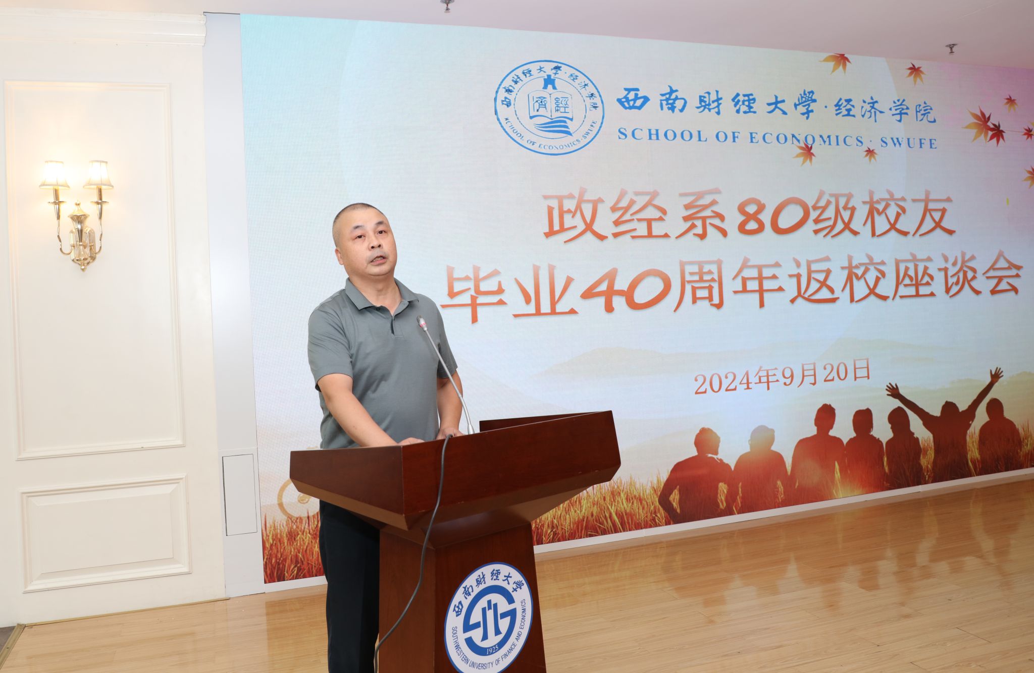2024年9月20日,秋风送爽,丹桂飘香,西南财经大学光华校区迎来了政经系80级校友们毕业四十周年的返校聚会。校友和老师们从四面八方汇聚一堂,在住友苑二楼会议室共同回顾往昔,展望未来,共叙师生情谊。