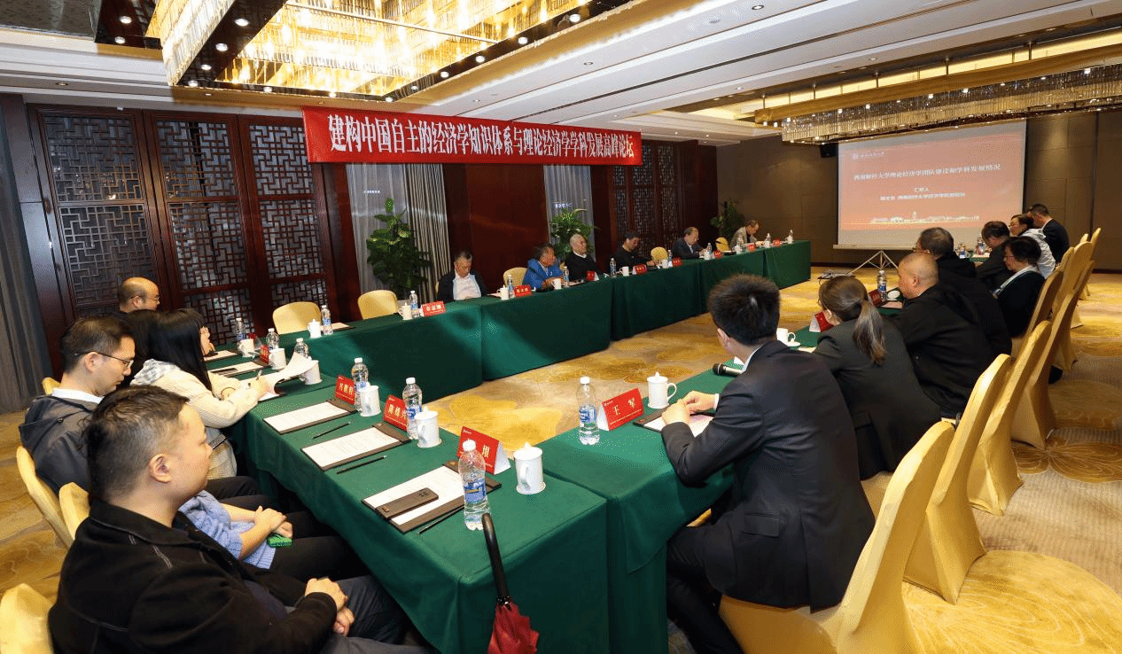2024年10月24日,西南财经大学“建构中国自主的经济学知识体系与理论经济学学科发展高峰论坛”在四川成都顺利召开。南京大学原党委书记洪银兴教授、中央民族大学原校长黄泰岩教授、武汉大学简新华教授、辽宁大学林木西教授、上海财经大学赵晓雷教授、中国投资有限责任公司原副总经理谢平等知名专家学者应邀参加研讨会。西南财经大学校学术委员会主任刘灿、马克思主义经济学研究院院长丁任重、中国金融研究院名誉院长刘锡良、科研处处长陈滔、副处长胡俊超、马克思主义经济学研究院副院长李萍、经济学院党委书记兰敏、副院长邹红、副院长韩文龙,以及经济学院、全国中国特色社会主义政治经济学研究中心研究人员出席研讨会。