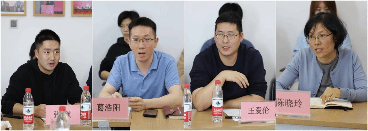 系所主任代表陈晓玲老师,教师代表王爱伦老师、张航老师、葛浩阳老师结合自身一线教学经验,针对新进教师岗前培训、教学成果共享及转化、学生多维帮扶、教学团队协同建设等问题提出相关建议。