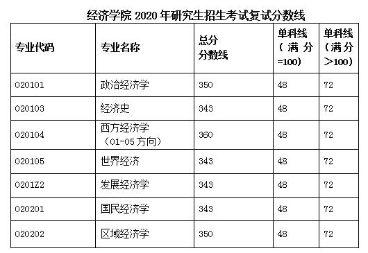 经济学院关于公布2020年硕士研究生招生考试复试分数线的通知