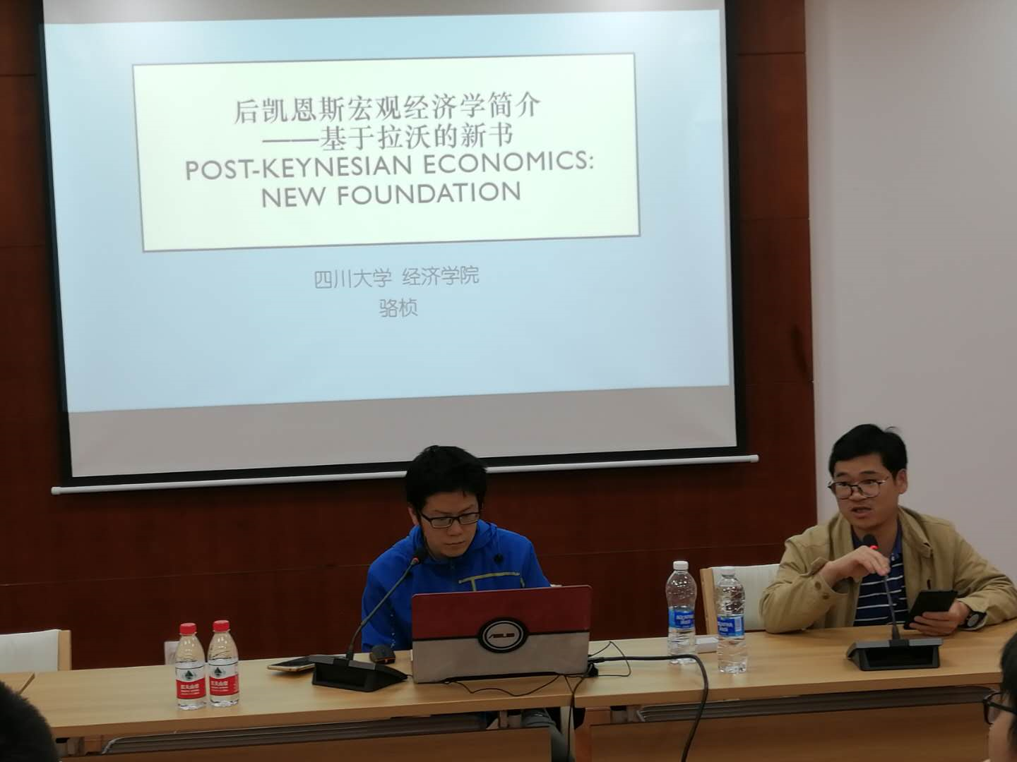 2019年5月28日晚,第60期经济学院学术创新系列讲座在格致楼911会议室成功举行。此次讲座邀请了四川大学骆桢副教授作了题为“后凯恩斯宏观经济学——基于拉沃的新书”的专题学术报告。讲座由李梦凡老师主持,经济学院吴垠教授及部分师生参与了此次讲座。