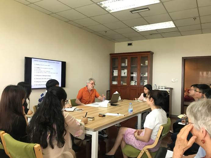 弗莱德·莫斯利教授的精彩讲述后,杨慧玲教授、李梦凡老师和部分学生积极向弗莱德·莫斯利教授提问,认真相互探讨马克思主义经济学研究上的疑惑和见解。本次讲座推动了我校与国际院校间的友好学术交流,促进了我校经济学科的发展与进步。